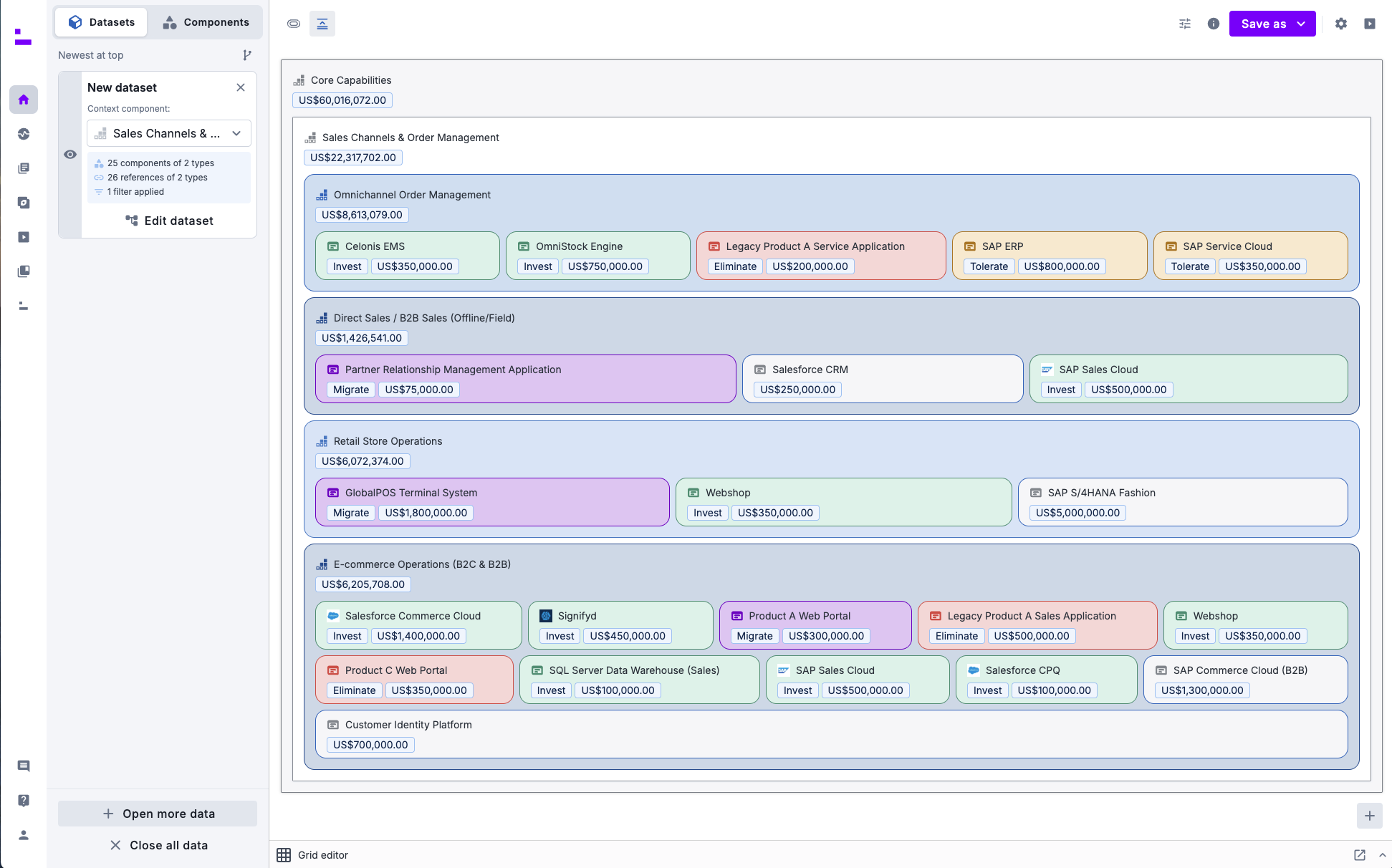 Ardoq is a dynamic, data-driven tool for Enterprise Architecture and a key tool for your digital transformation journey. The software helps organizations and businesses plan, execute, and predict the impact of change across their people, projects, strategies, processes, applications, infrastructure, and capabilities. With Ardoq, fresh data creates a dynamic overview that provides insights for better decisions. Through the aid of dashboards, interactive visualizations, and diagrams, users can focus on understanding interdependencies between technology and people, and less time documenting.