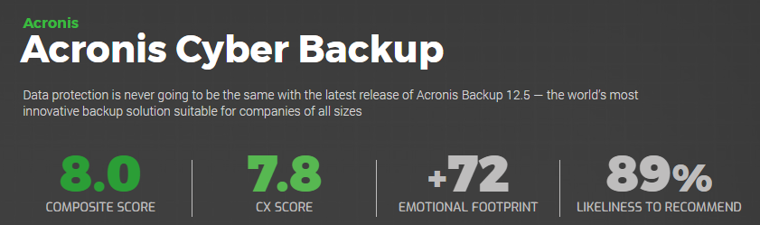 Source: SoftwareReviews Enterprise Backup and Availability, Report Published January 2019