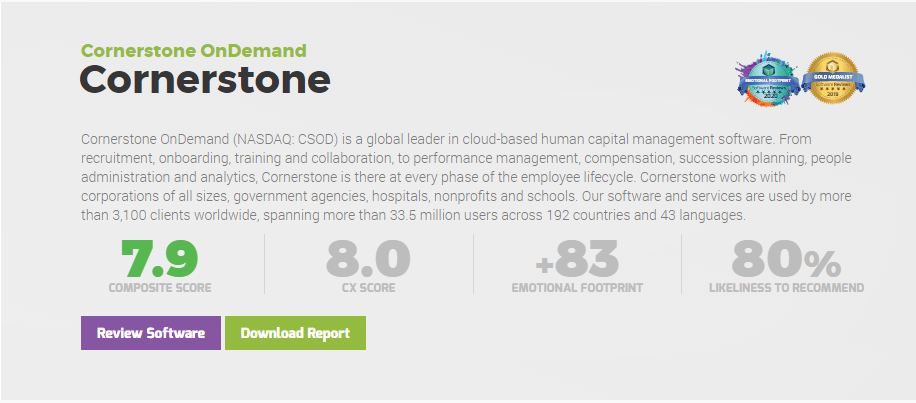 Cornerstone is heavily investing in the LMS space, based on its two recent acquisitions, Clustree and Saba. Despite having multiple HR suites, it seems that Cornerstone is focusing on its LMS offerings in order to become the leader in this area.
