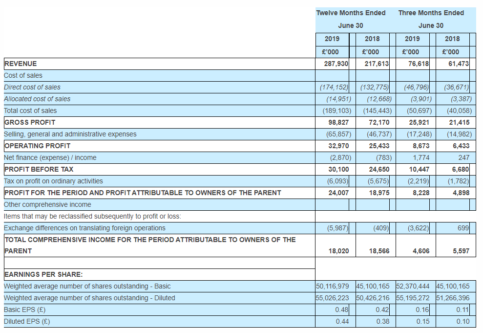 - FY2019 profit before tax: £30.1 million, compared to £24.7 million the previous year.