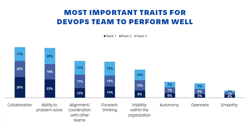It is clear from the critical traits section of the DevOps Survey that Atlassian’s tools are geared towards breaking down the obstacles to effective collaboration and problem solving to drive a technology-supported cross-functional team alignment. The ability to succeed in these areas is critical, as over 61% of survey respondents indicate that priorities change either daily or weekly in the DevOps world.